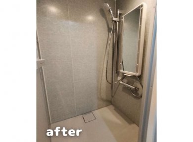 収納スペースをシャワールームと脱衣室の新設のリフォームを