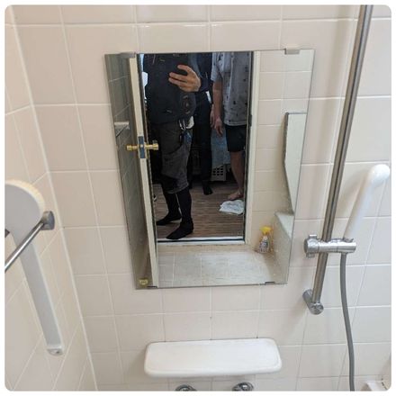 H様のご要望は、浴室のミラー取替とシャワーヘッド取替で、
