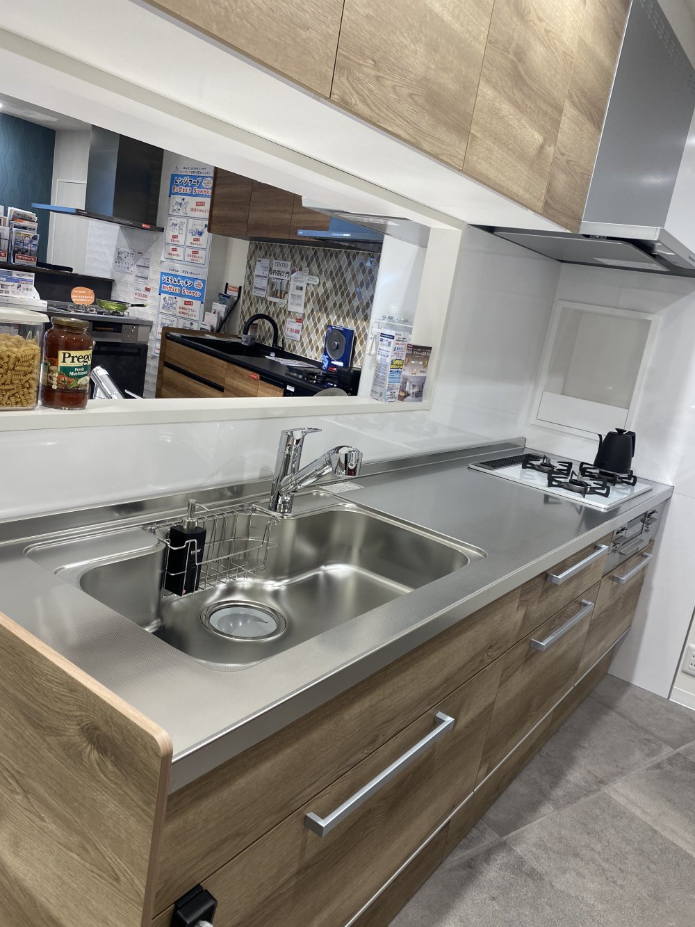 モデルチェンジで入れ替えられた展示により、キッチンの雰囲気や使い勝手をリアルに体感できる空間になっています。
