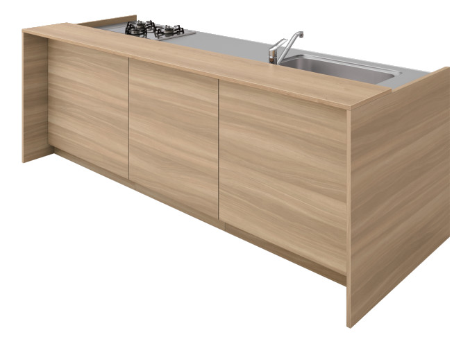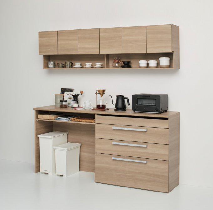 デュアルトップ対面と同素材で統一できる収納ユニットで、空間全体に統一感を持たせ、インテリア性を高めることができます。