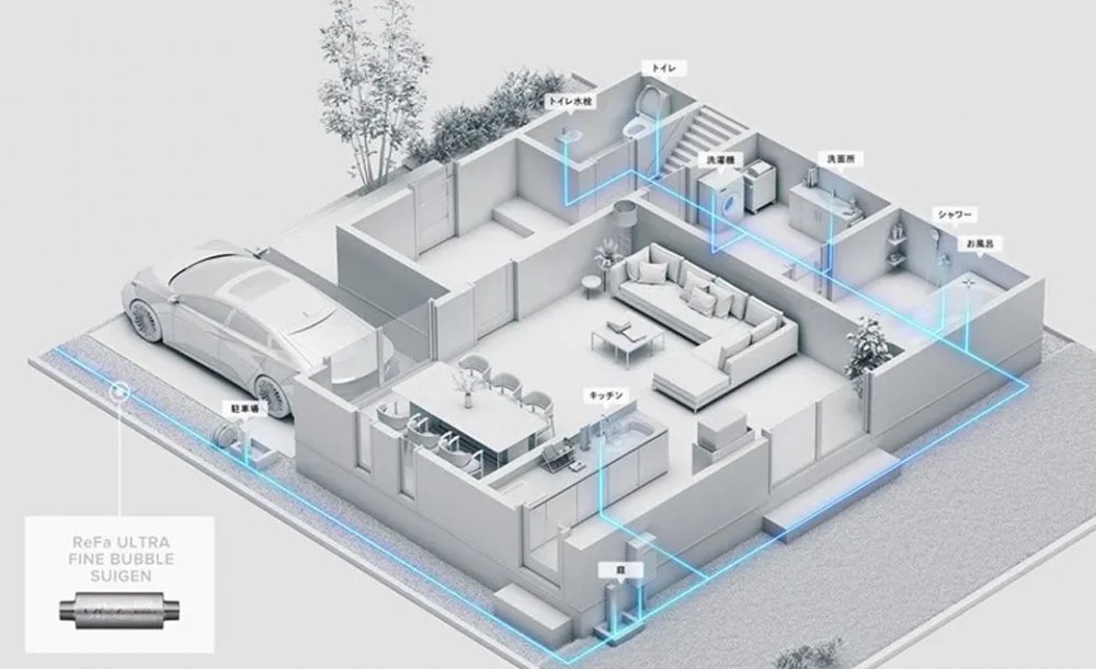 シャワーヘッドのみで使うタイプとは違い、SUIGENは家全体の水にウルトラファインバブルを発生させる設備です。